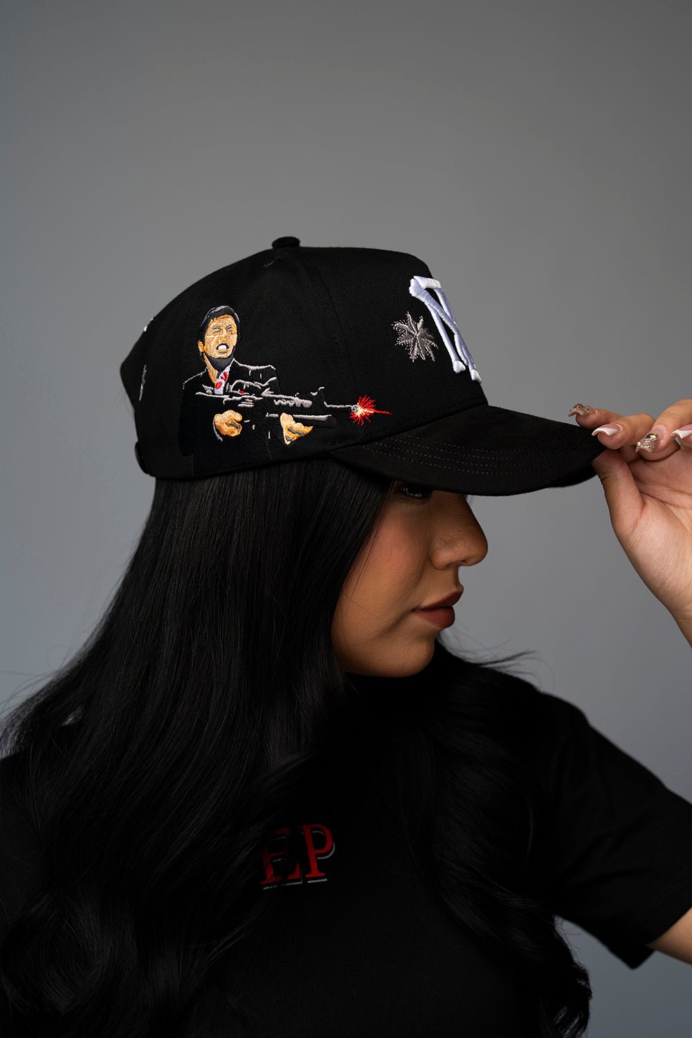 • Iconic Scarface-inspired palm tree and globe motifs on the crown