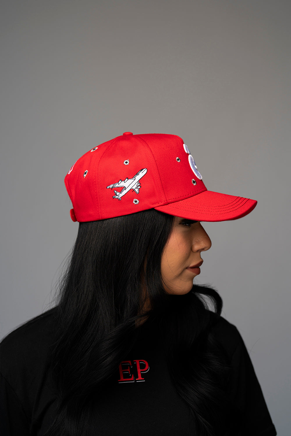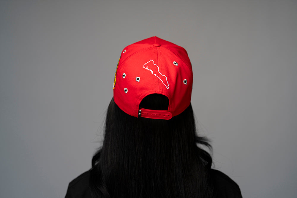 • Distinct bullet hole embroidery details across the crown