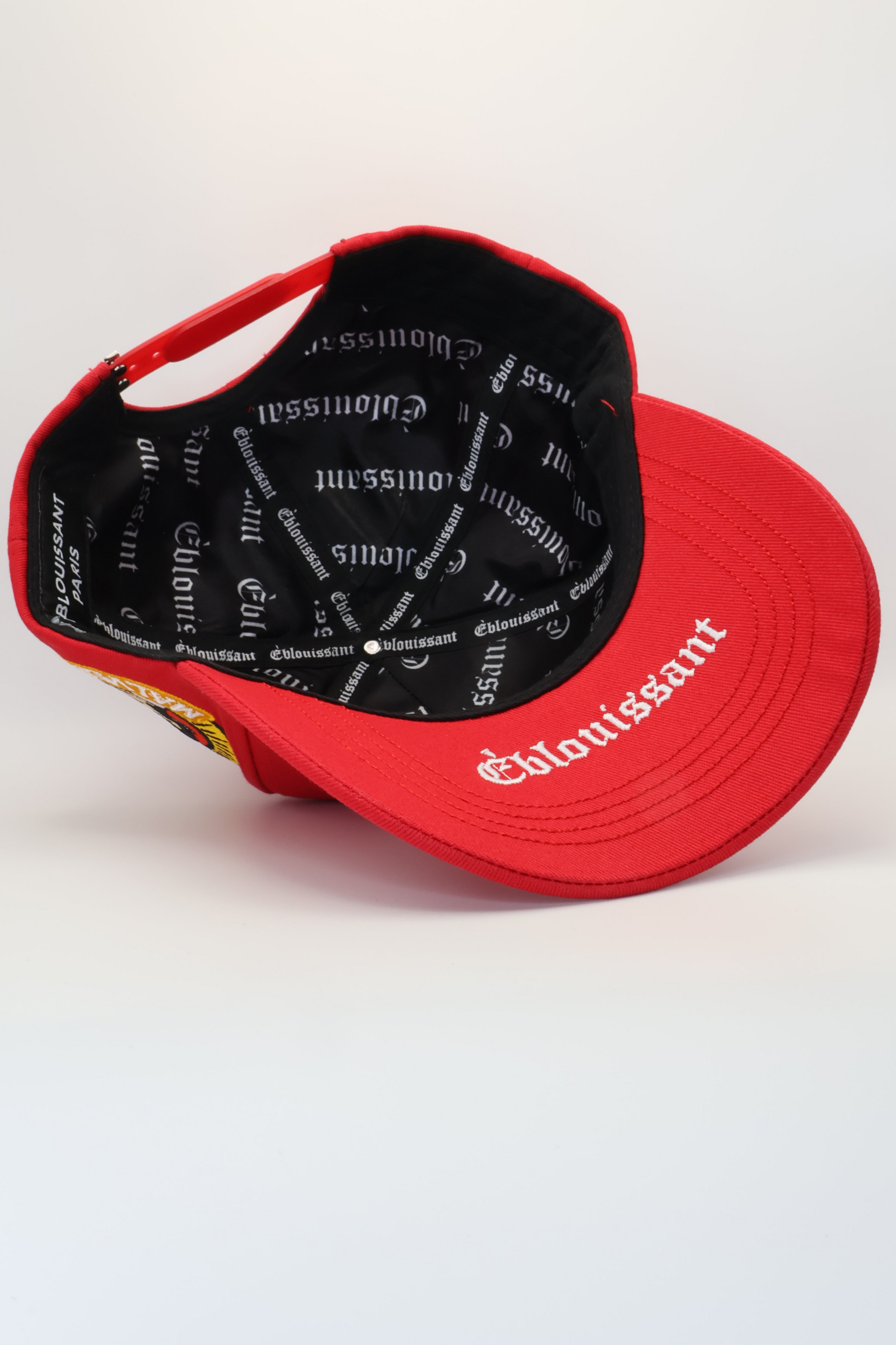 • Bold red cap with embroidered “TC” logo on the front